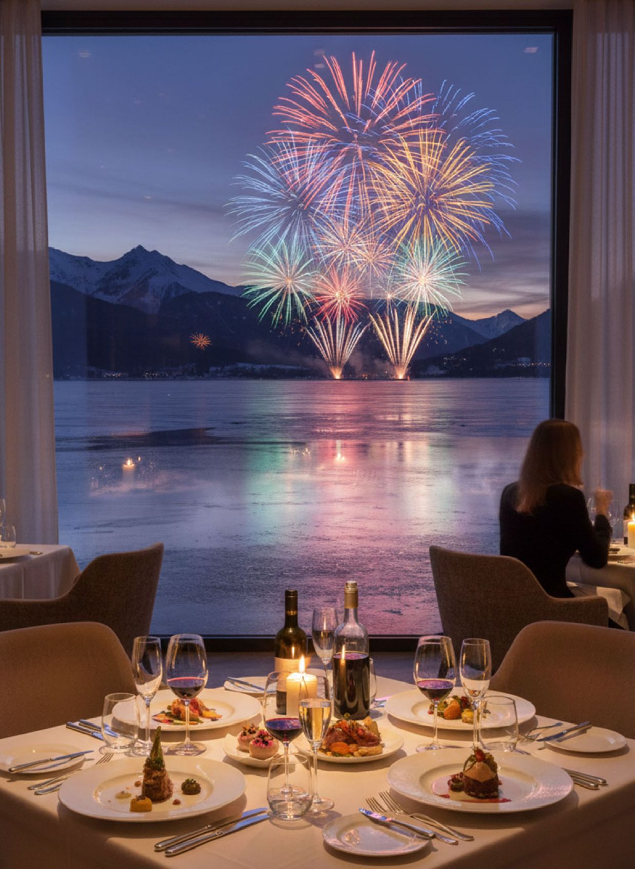 Gourmet-Dinner trifft auf Seeblick-Feuerwerk